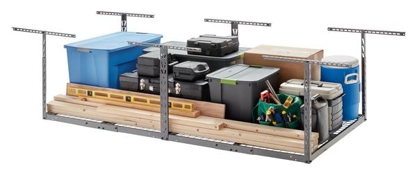 Het Gladiator® Overhead GearLoft ™ opbergrek voegt een nieuwe dimensie toe aan de garageorganisatie. Verwijder een reeks items van de grond, seizoensartikelen en bouwmaterialen tot bakken op ware grootte. De verstelbare hoogte maakt tot 2.7 m3 opslag mogelijk en de steun kan tot 450 kg gelijkmatig verdeeld gewicht dragen. De montage is snel en probleemloos dankzij onze EZ Connect-technologie. Het stevige rek, de harde coating, corrosiebestendige afwerking en geïntegreerde leggers zorgen voor duurzaamheid, terwijl de EZ Connect borgpennen de verbindingspunten op hun plaats houden. Gesteund door de Gladiator 10 jaar beperkte garantie, kunt u jarenlang op deze hangende opslag rekenen.